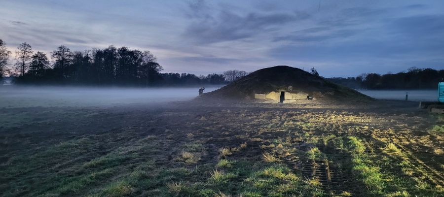 Die großen Bäume wurden gefällt und Abfälle aus den letzten Jahrhunderten wurden aus dem Eingang und der Kammer entfernt. Ebenso wurden die Schäden durch die Tiere behoben, sodass die Steinkonstruktion wieder sicher ist. Während der Restaurierung wurde außerdem entdeckt, dass die Grabstätte umgebaut wurde – möglicherweise in der Bronzezeit. Damals wurden einige der großen Decksteine und Randsteine mit kleineren Steinen vor den Eingang gesetzt. Auch die Form und Größe des Hügels wurde verändert.